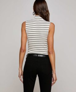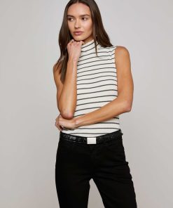 The Rosie is a sleeveless mock neck tank, crafted from stretch cotton modal for a lightweight, ultra-soft feel. With its ribbed texture and classic stripes, it’s a timeless piece—perfect as a base layer or styled solo.