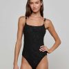 The Sally bandeau top channels retro glamour with its structured shape and wide straps. Gold logo buttons and hooks elevate the design with luxe detailing, while the supportive fit makes it ultra flattering. Pair it with the coordinating skirt or bikini bottom.
