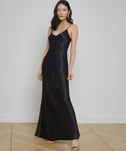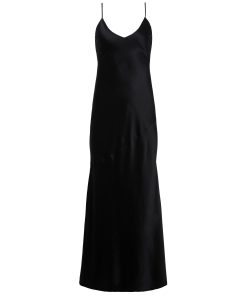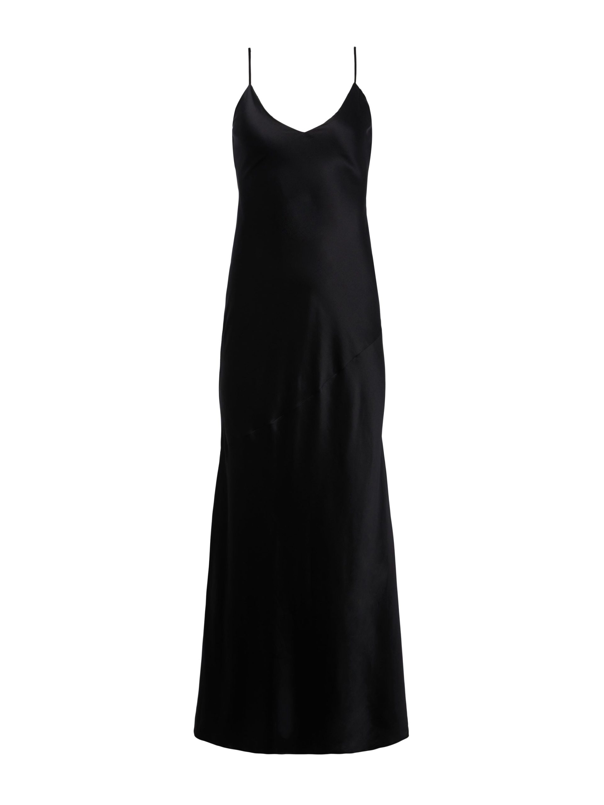 All understated glamour, our signature silk slip gown is back in a timeless black.