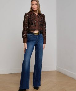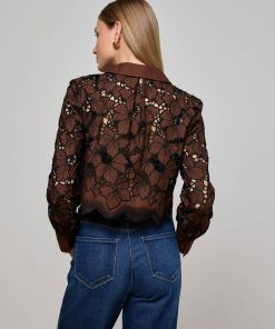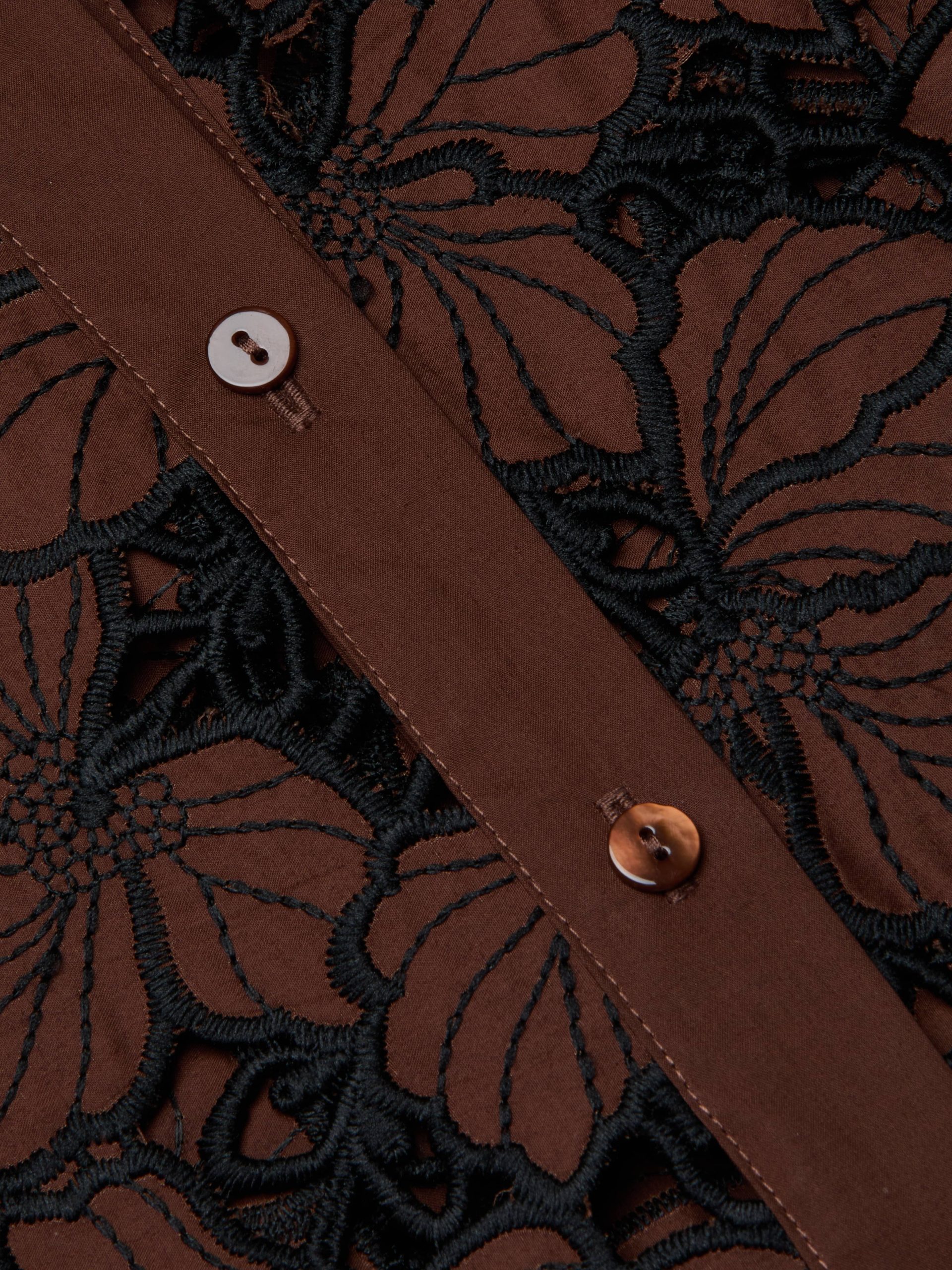 Our modern spin on the eyelet blouse, the Seychelle delivers classic shirting details in a cool cropped cut. Now in hot fudge brown and black.