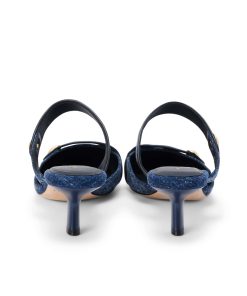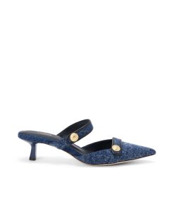 At once retro and modern, the Gilliane mule is crafted with denim, contrast piping, and finished with our signature embossed dome buttons.