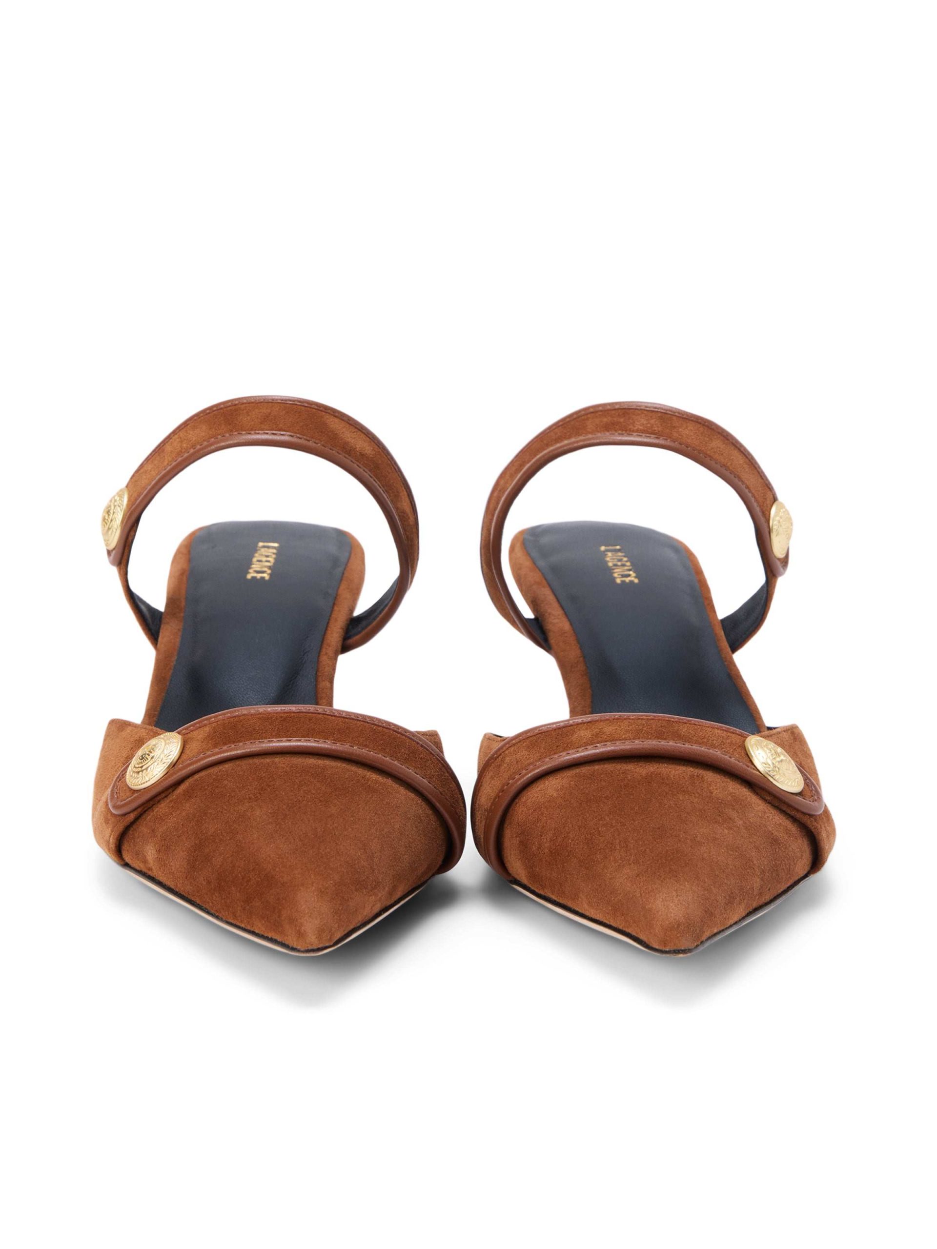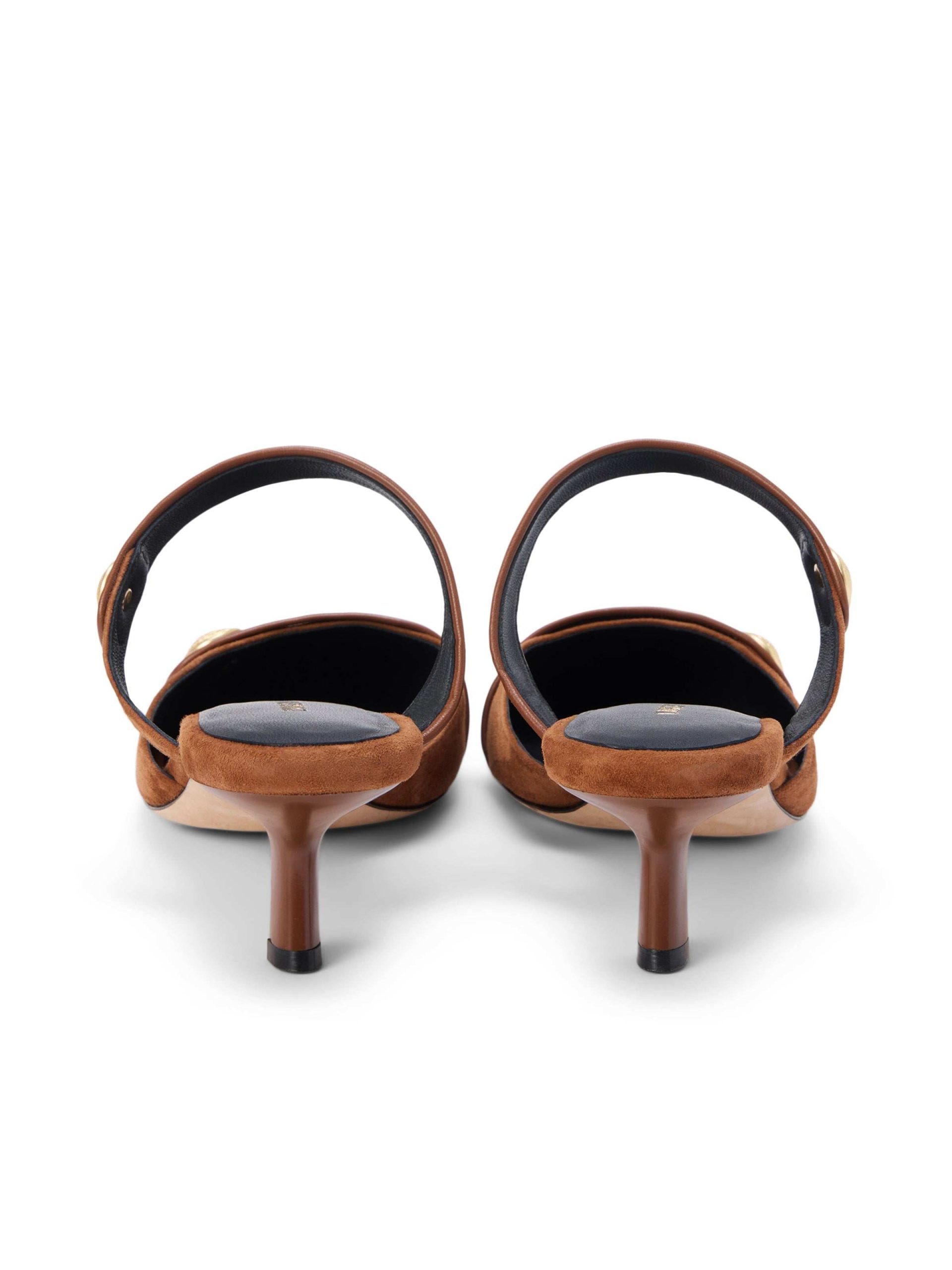 At once retro and modern, the Gilliane mule is crafted with supple suede, subtle contrast piping, and finished with our signature embossed dome buttons.