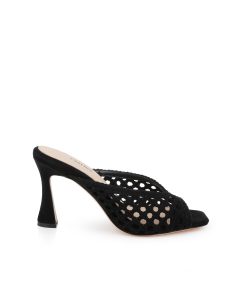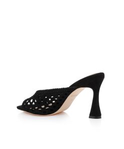 With a woven suede upper and sculptural flared heel, the Jacques is ready for your next night out. A V-cut vamp adds a flattering, elongating finish that elevates any look. In black suede.