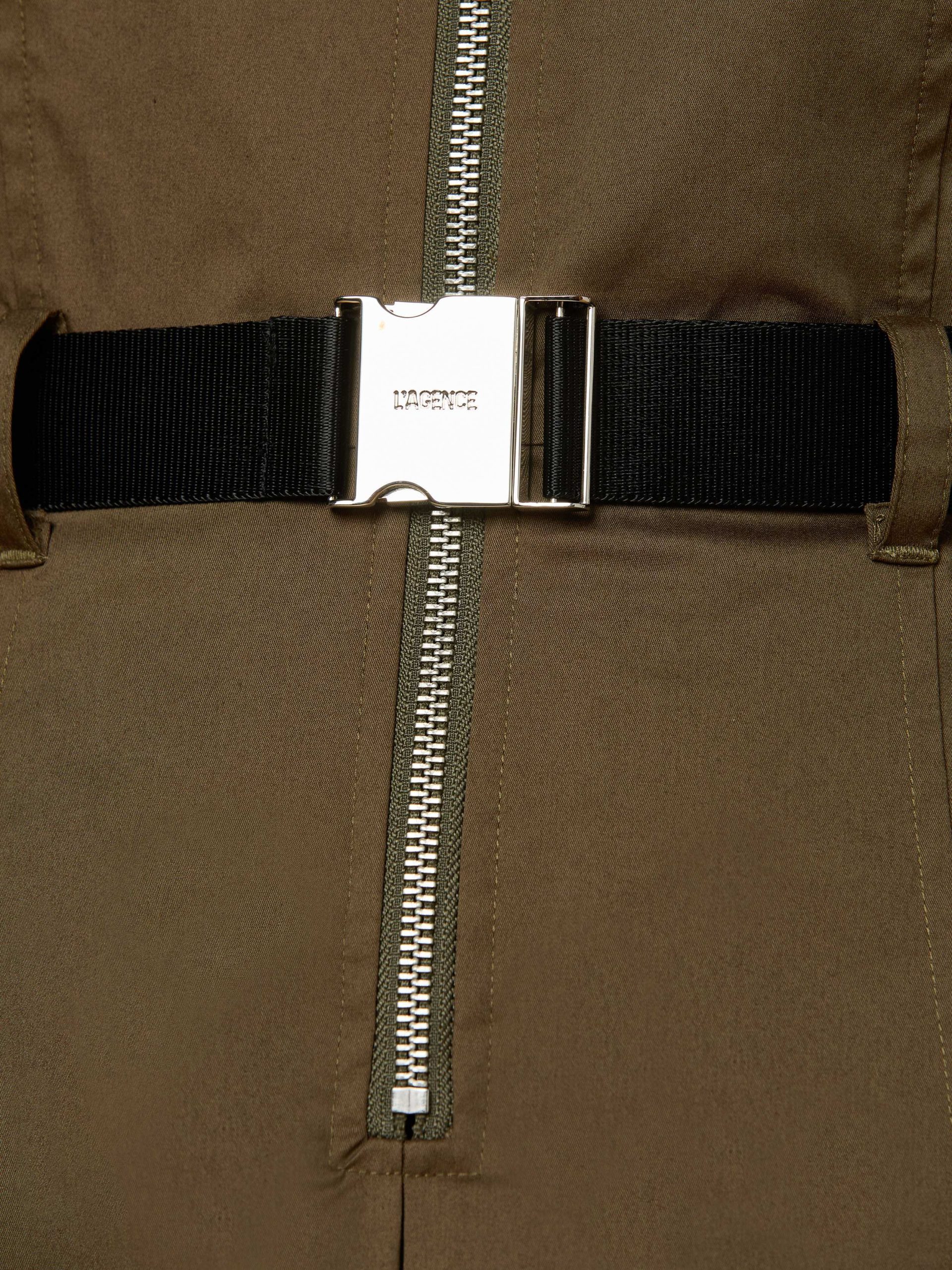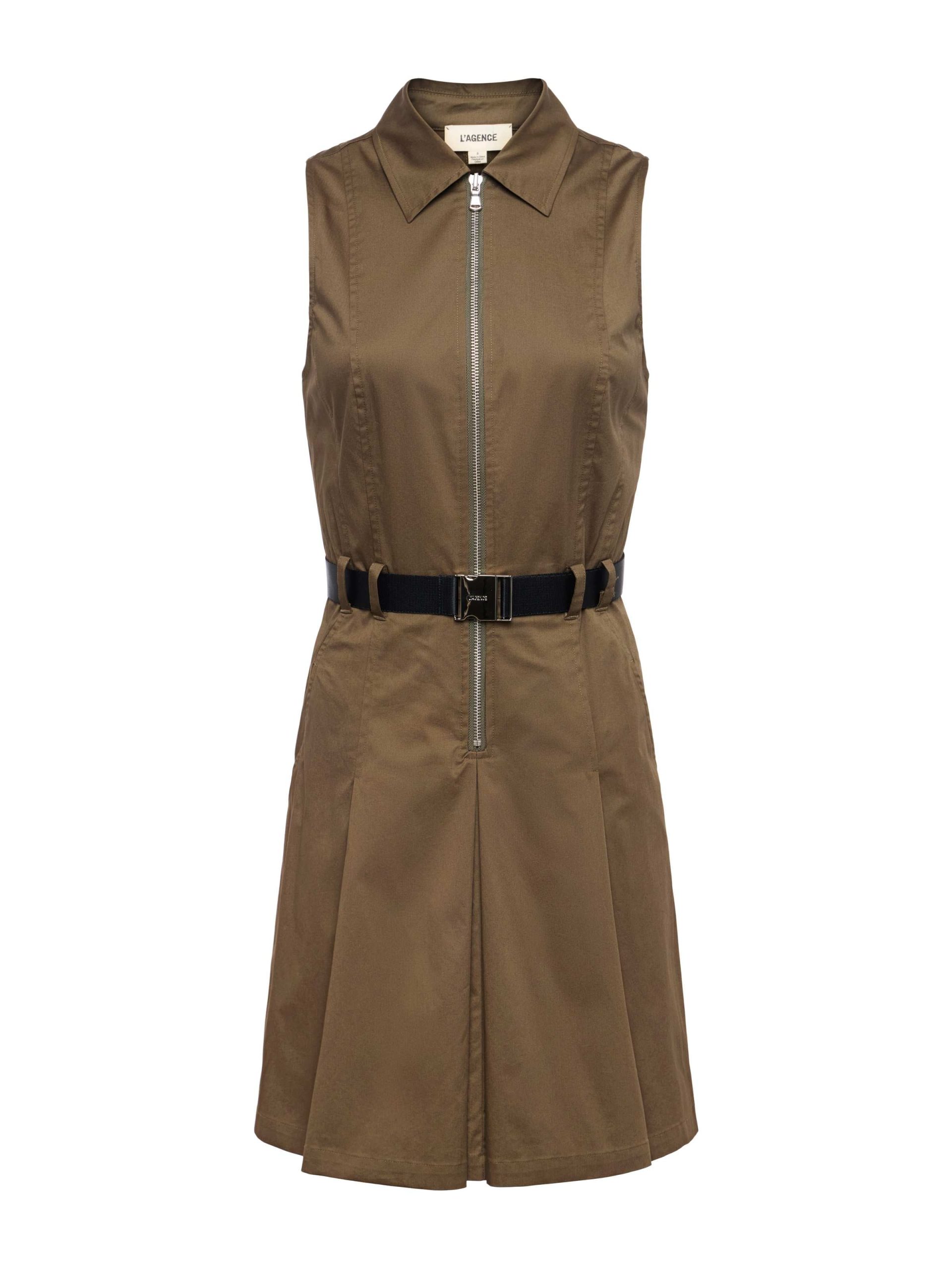 The Sima is a sophisticated shirtdress that blends utility and polish with its structured collar, silver-tone hardware, and black logo belt that cinches the waist. Tailored yet effortless, it’s perfect for desk to drinks.