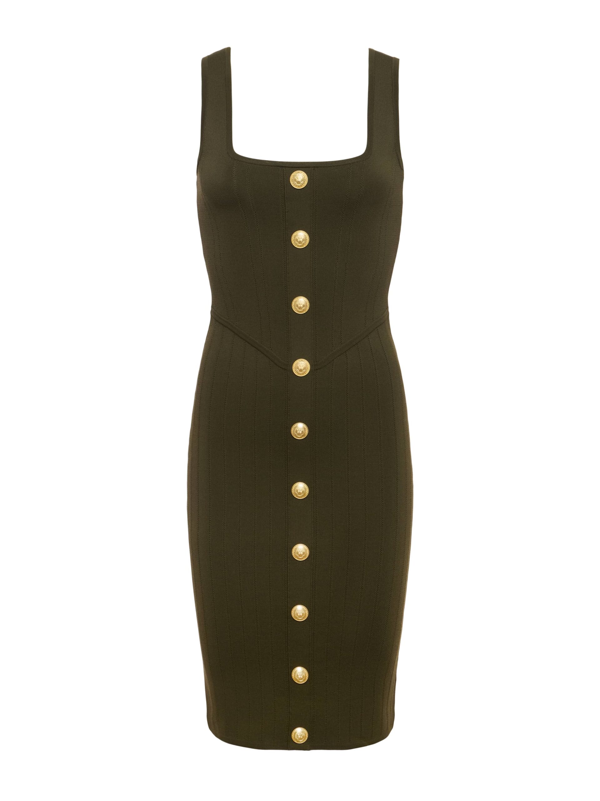 The definition of easy chic. Perfect for every day-to-night occasion, the Soleil dress is crafted from a flattering and forgiving power knit and constructed with corset-inspired waist definition and deep scoopneck. Now in pine green.