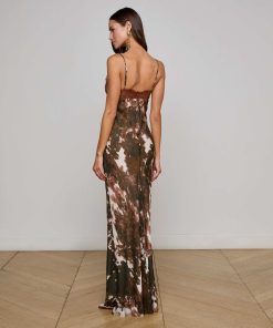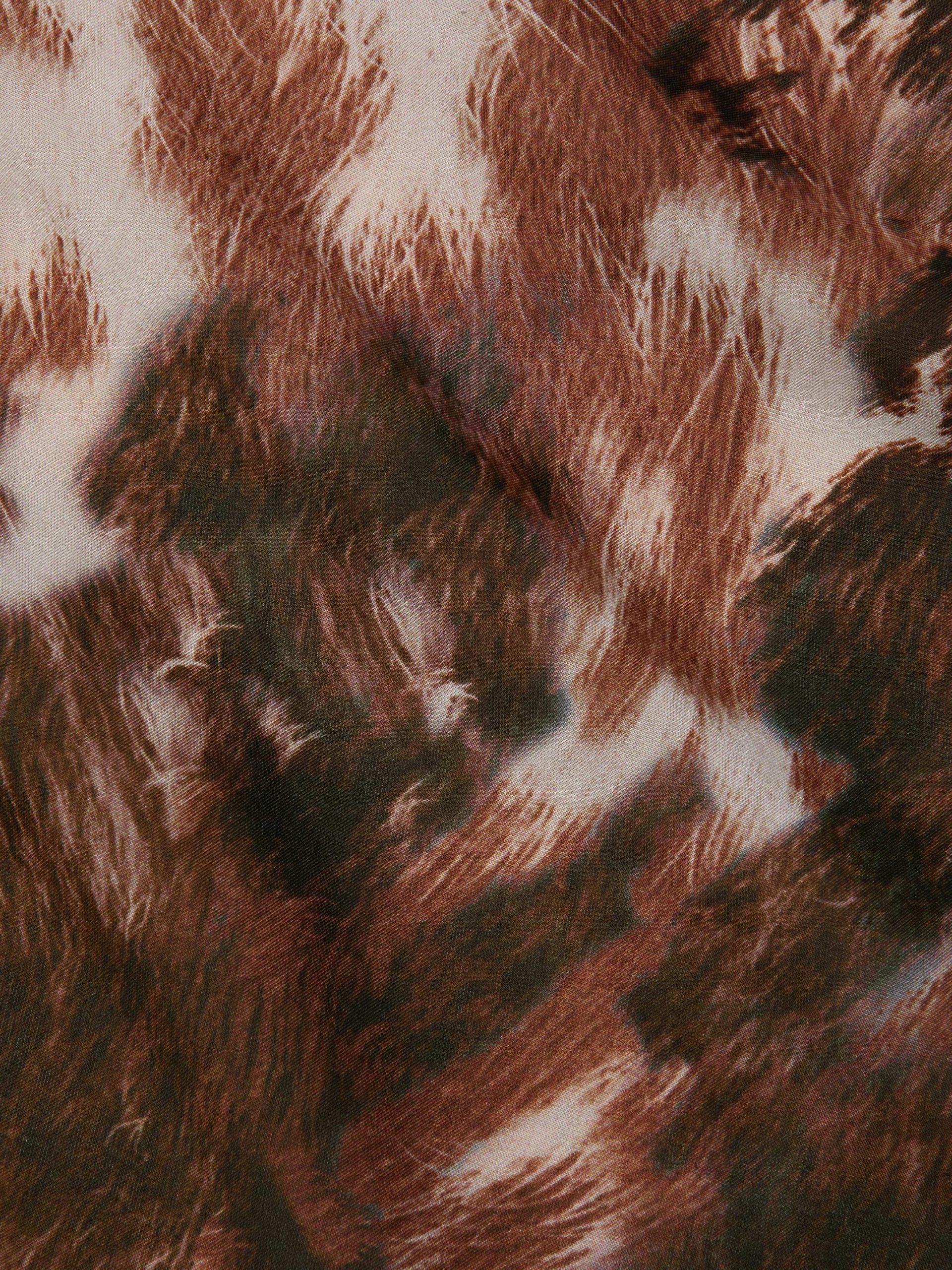 Intimate glamour defines the Susanna. Sultry lace offers the illusion of lingerie while fluid silk drapes beautifully against the figure. Now in a trend-forward cow print.
