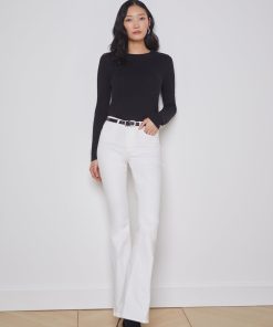 A form-fitting, long-sleeved crew neck tee in rich black. Crafted from soft and stretchy luxe microfiber, Tess features a high crew neck, long sleeves, and a smooth, lean fit. Style No. 5491MJT-BLAC