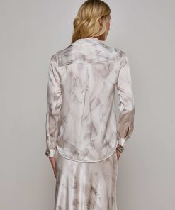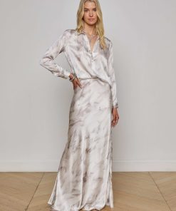 Meet the iconic long-sleeve silk button-down that belongs in every wardrobe. This L’AGENCE bestseller is now back in a subtle white feather print.