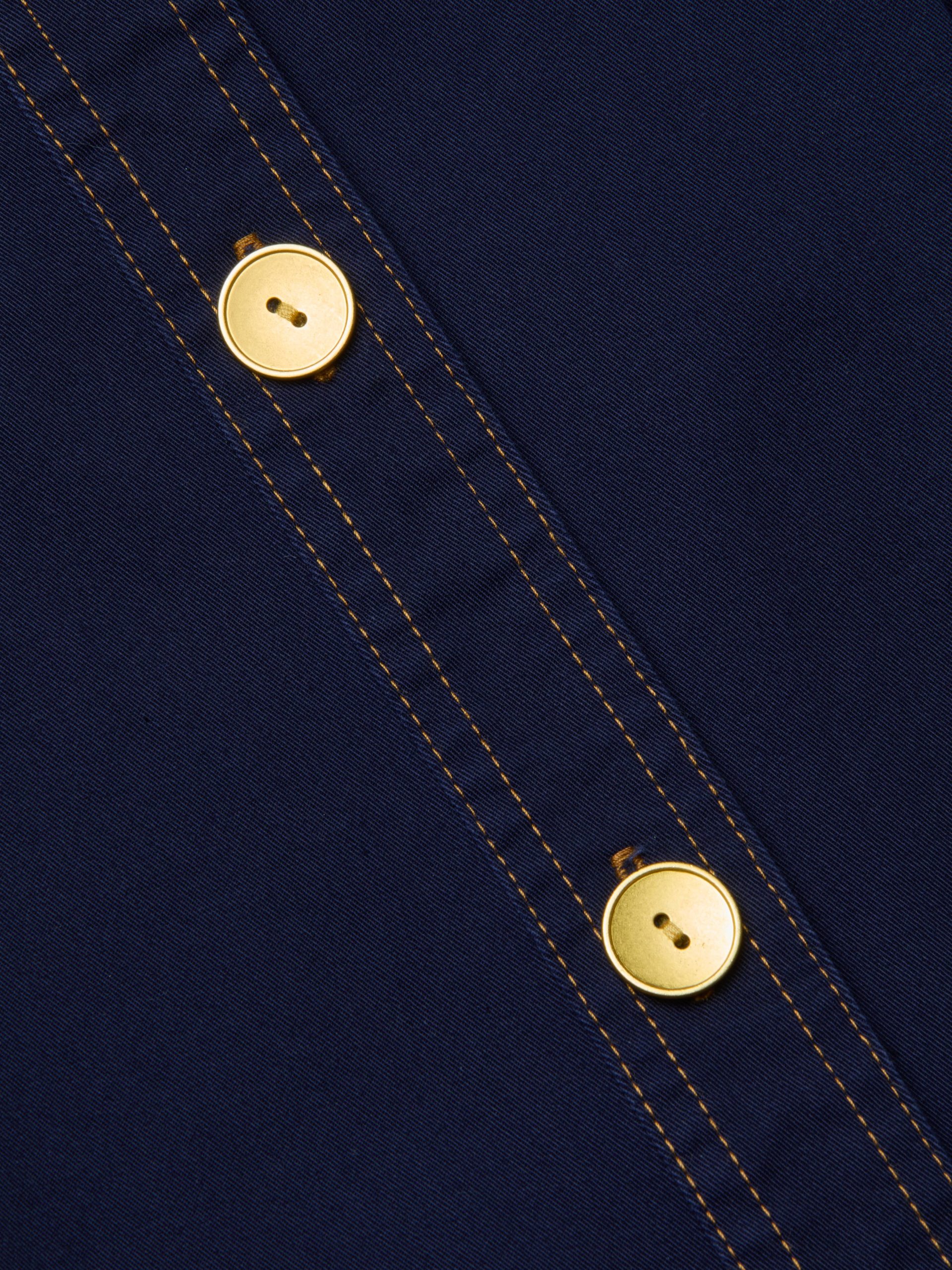 Structured yet easy to wear, the Velma is a utility-inspired shirt dress in stretch cotton, featuring chic gold buttons and contrast stitching. A self-tie belt cinched the look together.