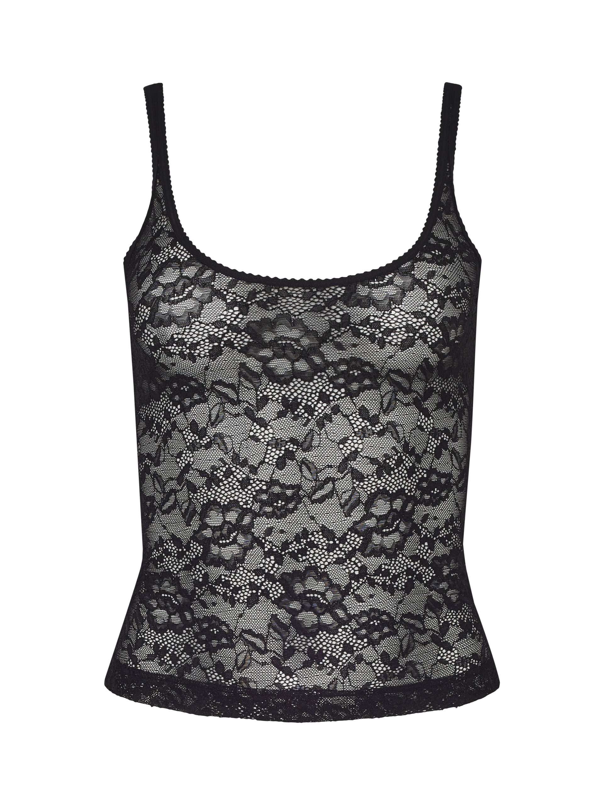 This sheer lace tank is the ultimate base layer—delicate yet daring. With a flattering scoop neck and allover floral pattern, it’s perfect for styling solo or layering under favorite jacket.