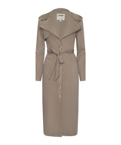 The must-have trench of the season. Introducing the Zavia, a refined denim trench constructed with an oversized collar and lapels, epaulets, and lightly padded shoulders for a strong silhouette, cinched together by a waist tie belt. Matte gold buttons elevate the clean silhouette with a luxe finish.